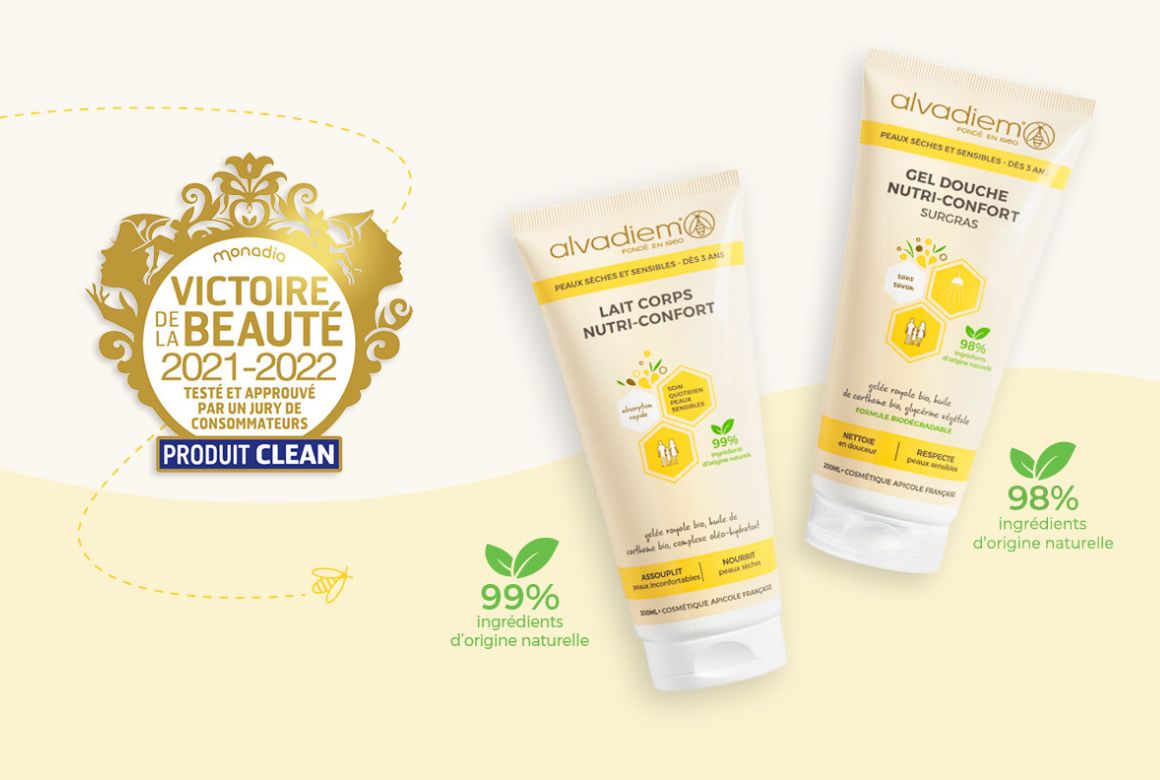 Notre démarche est alors récompensée par les Victoires de la Beauté : le Gel Douche et le Lait Corps sont lauréats dans la catégorie "Produit Clean", évalués par des experts et testés à l’aveugle par des consommateurs. Une belle reconnaissance de notre façon de formuler : clean pour la peau et clean pour la planète.