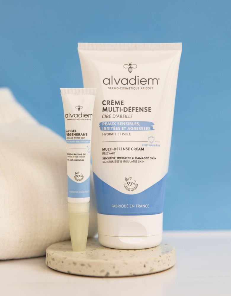 Alvadiem a su extraire tout le pouvoir des actifs ruche pour anticiper et traiter les engelures au travers d'une gamme duo : la Crème-Multi Défense à la cire d'abeille pour prévenir leur apparition et l'Apigel Régénérant au miel de thym pour assainir et accélérer la cicatrisation. La seule gamme naturelle qui s'adresse aux engelures !